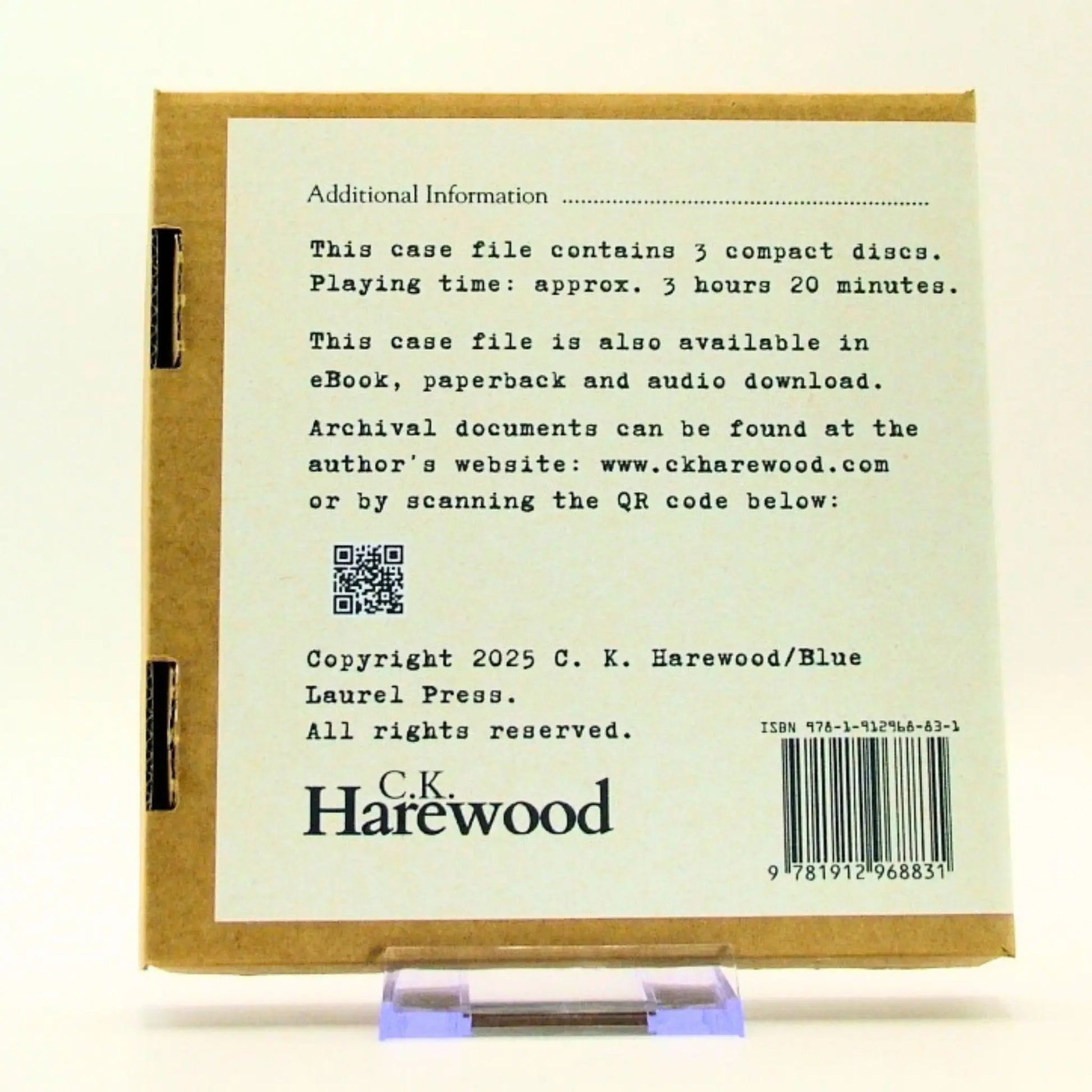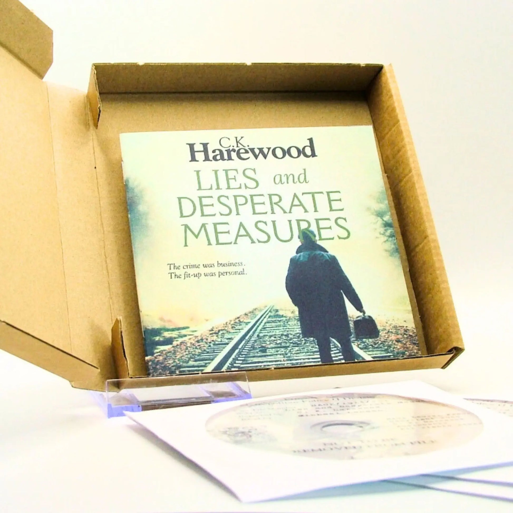 This audiobook comes in a cardboard box containing individual CD-R discs in paper sleeves and a colour booklet.